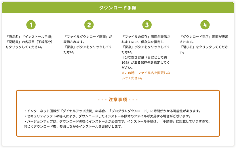 インストール手順 : ダウンロードコーナーからダウンロードするインストール手順書